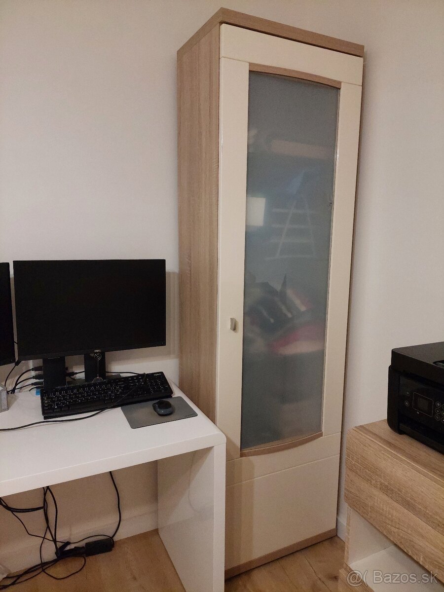Predám vitrínu v odtieni dub bardolíno a béžová, nohy matný chróm.