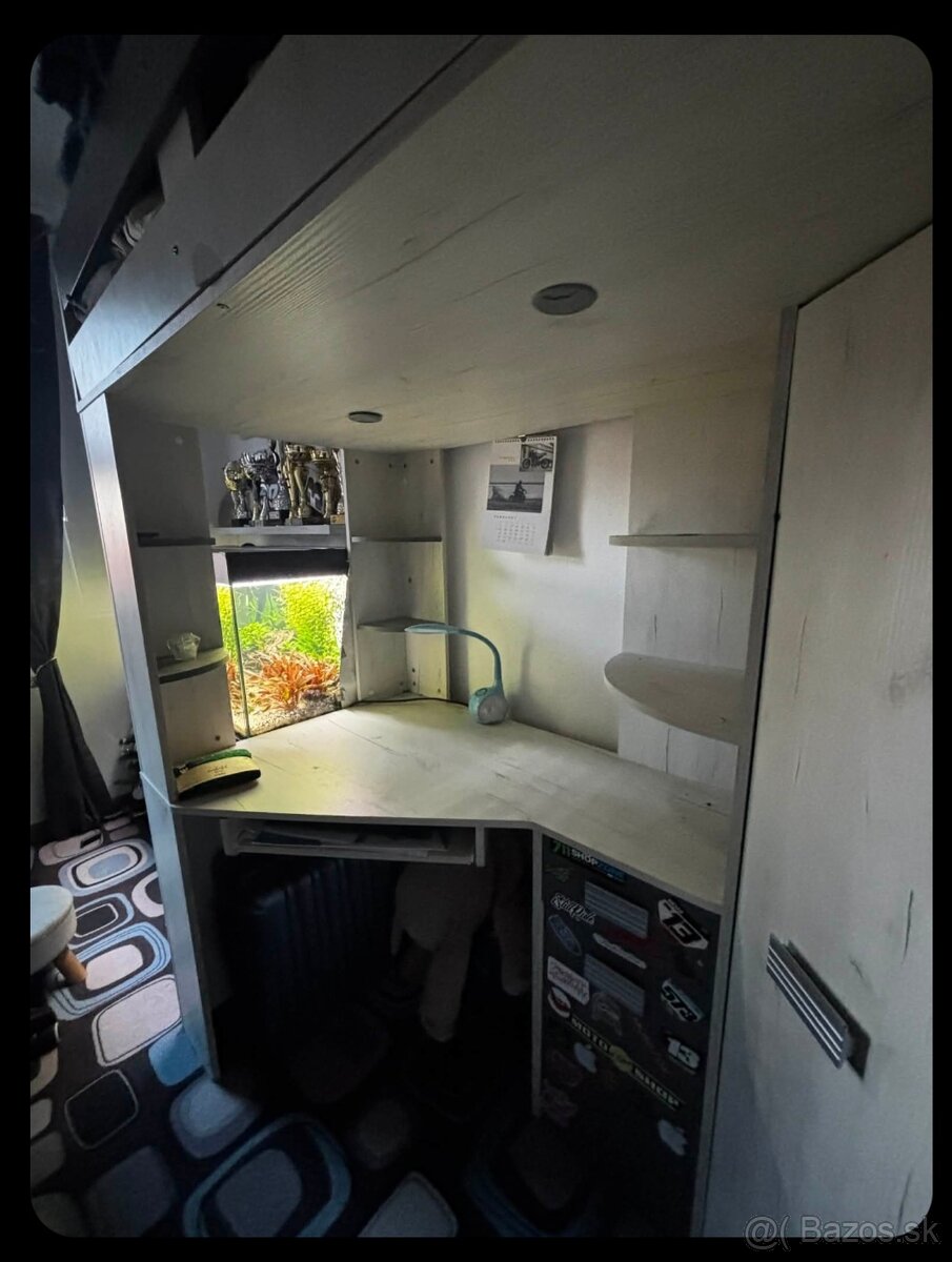 Poschodova postel siva - [2.1. 2026]Predam poschodovu postel pouzivanu 2,5 roka. Hore sa vobec nespavalo iba dole. Rozmer madracov 200x90cm. Vysuvne lozko rozmer madraca 190x90cm malo vyuzivane. ten predavam k posteli. Dva supliky pod postelou. Dolna zabrana sa da odoberat. Predaj skrz kupu nabytku na mieru