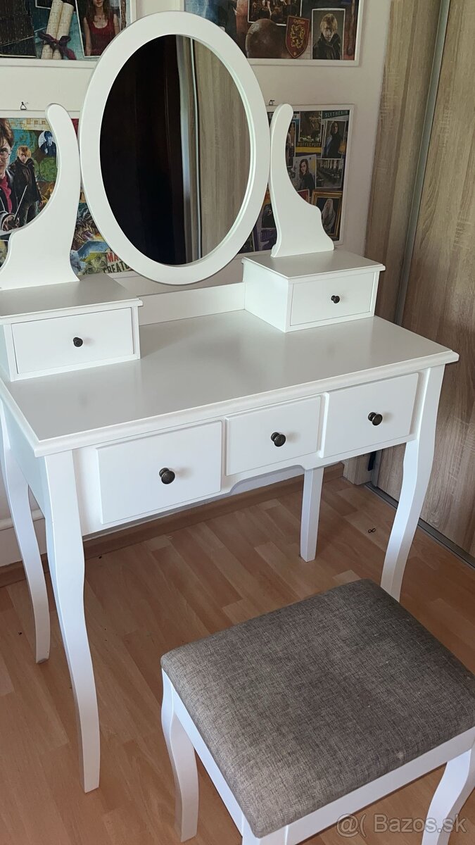Predám kozmetický stolík. Všetko je vo veľmi dobrom stave, prakticky nevyužívané – ako nové. Stolík je čistý, nepoškodený a vhodný na okamžité používanie a to isté aj stolička ale musí sa ešte vytepovať.! A ešte vám môžem poslať video ako vyzerá zblízka ale bohužiaľ sa tu nedá pridať.