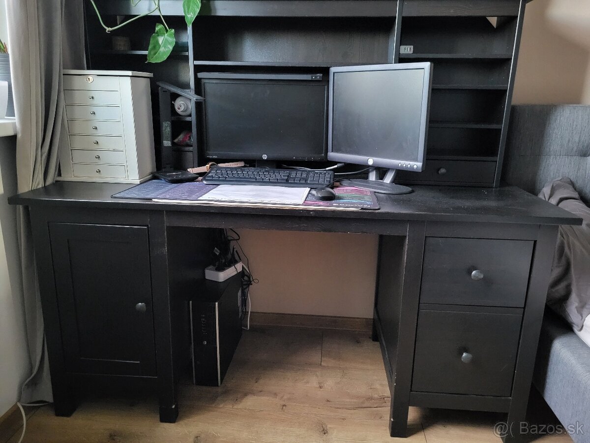 Predam pouzivany stol z masivu IKEA Hemnes v ciernej farbe. Ma uz par nedostatkov(na foto), ale sikovny majter si ich lahko opravi.