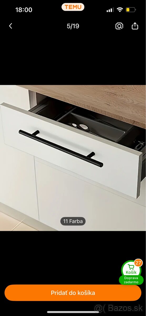 Predám úchytky na kuchynskú linku alebo na nábytok farba čierna rozmer : rozteč dier 25,6cm mám 19 kusov cena 35€ iba vyskúšané nám sa nehodili