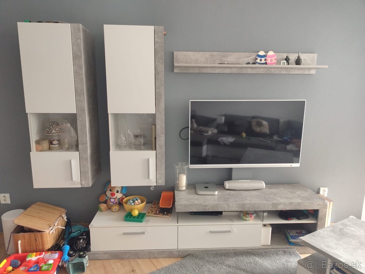 Predám obývaciu stenu v dekore betón, v dobrom stave. Mám k tomu aj rozťahovací jedálenský stôl a konferenčný stolík, viď ďalšie moje inzeráty