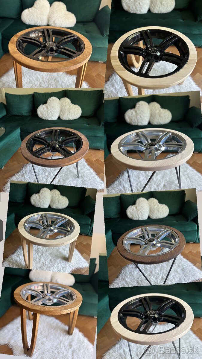 Predám ručne robenýe drevené stoly s diskom . Možnosť aj s kovanymi nohami. (BMW Aud škoda VW Porsche )