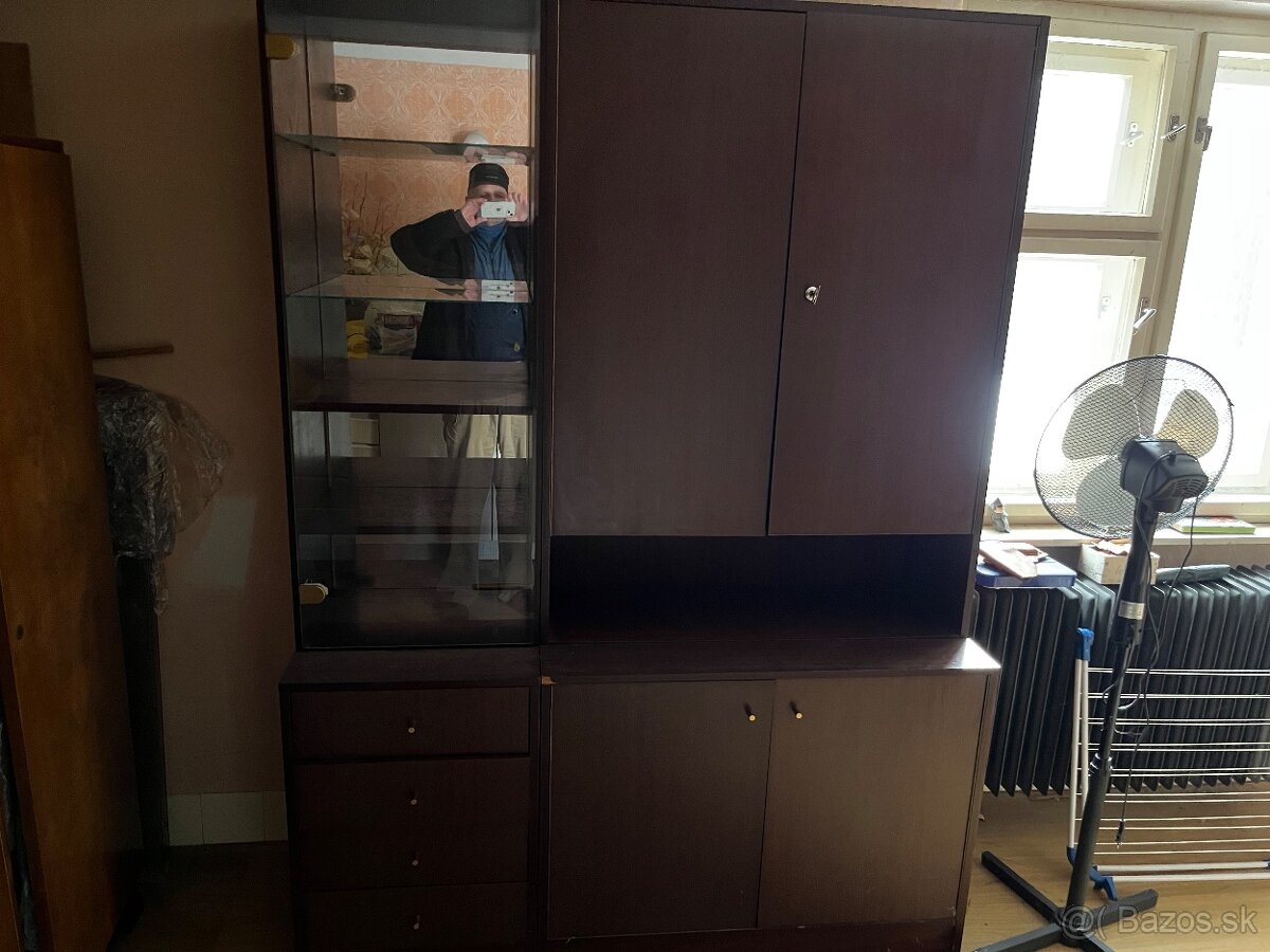 Má v sebe sklenú vitrínku s sklenymi poličkami. V jednom celku sú dve skrinky s poličkami a asi 5 šuflíkov. Sekretár si treba odviesť z Kyncelovej pri Banskej Bystrici. Kontaktujte ma na mobil.
