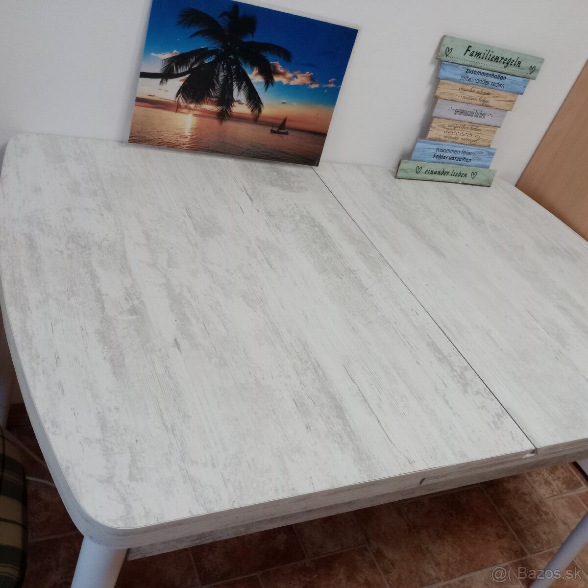 Stôl je rozťahovací až pre 8 osôb, pevný, stabilný a bez poškodení.