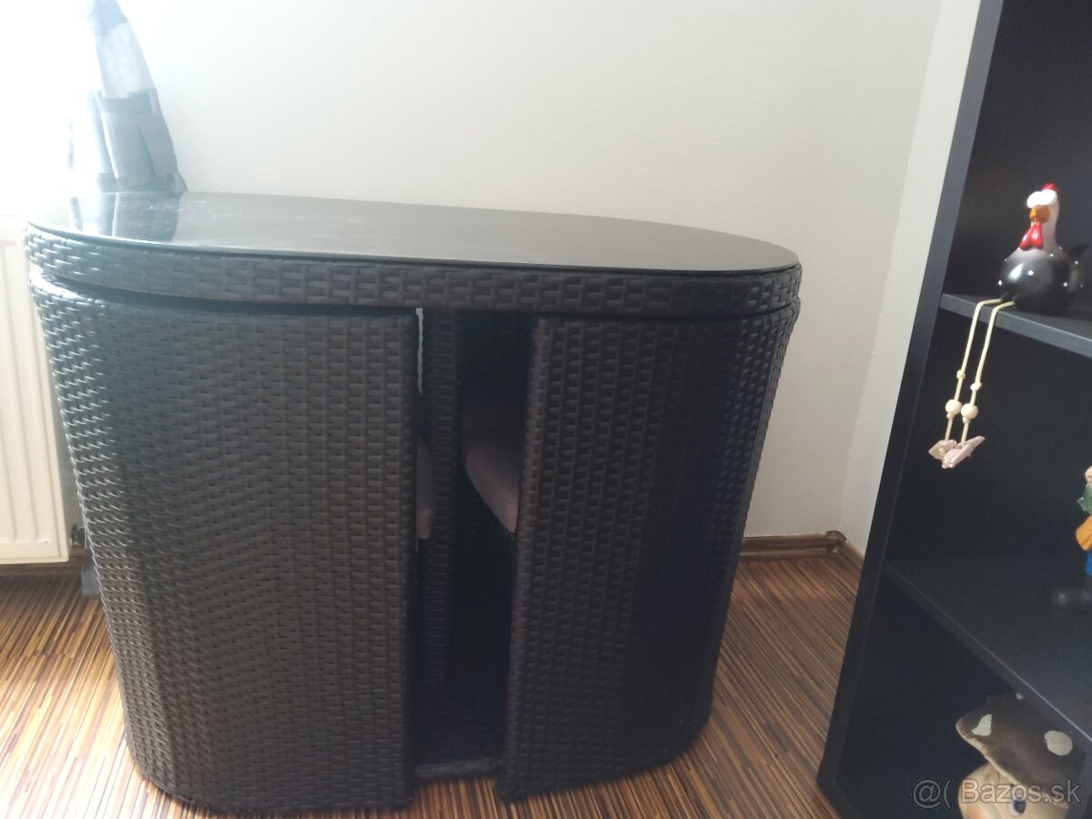 Predam ratanovu supravu 2 kresla s podsedakmi sedej farby + stol s tmavym sklom a plachtu na zakrytie gratis,vsetko ako nove bez znamok pouzivania.