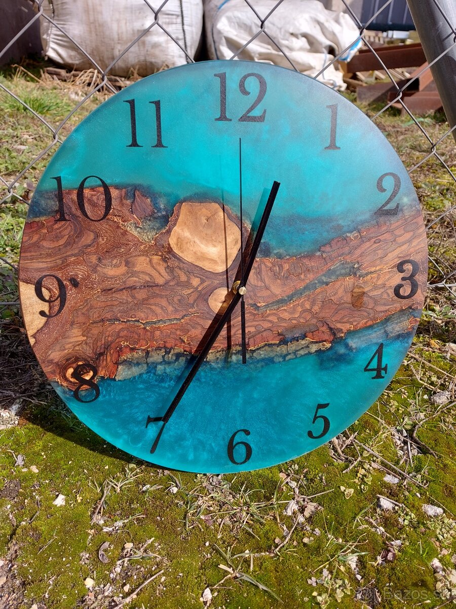 Nástenné hodiny z masívu orechového dreva a epoxidovej živice. Hodiny majú priemer 40cm a sú poháňané tichým chodom strojčeka. Hodiny majú vyfrézované a zaliaté čísla na ciferníku.