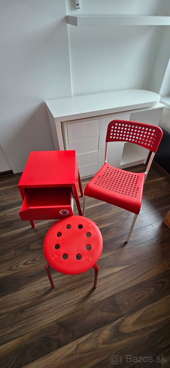 Červená stolička+ taburetka+ nočný stolík 37x35