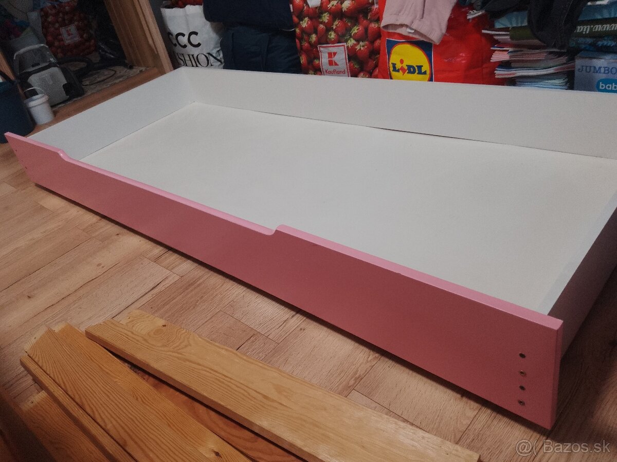 Úložný priestor / šuflík pod posteľ - [3.1. 2026]Materiál úložného boxu: predná doska - borovicový masív, bočné dosky - DTD, dno - sololit