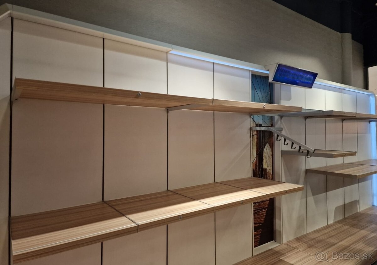 Profesionálny kovový stojan s nastaviteľnými policami – ideálny do predajne, showroomu alebo kancelárie. Robustná konštrukcia s imitáciou dreva na poliach a zabudovaným osvetlením pre perfektnú prezentáciu tovaru.