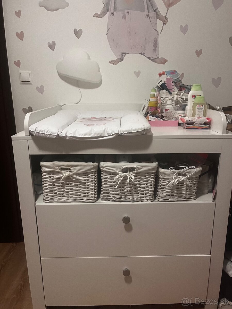Predám detskú postielku novu s matracom , nepouzivanu a pouzivany, zachovaný prebalovaci pult vid fotor