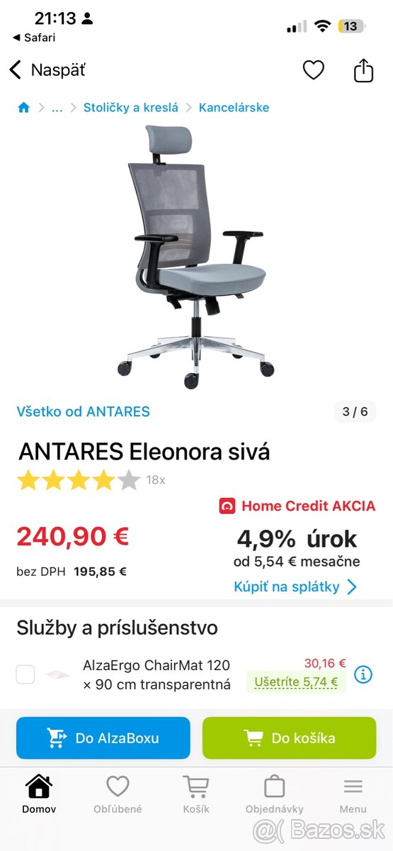 Kancelárska stolička ANTARES Eleonora s výškovo nastaviteľnou bedrovou výstuhou