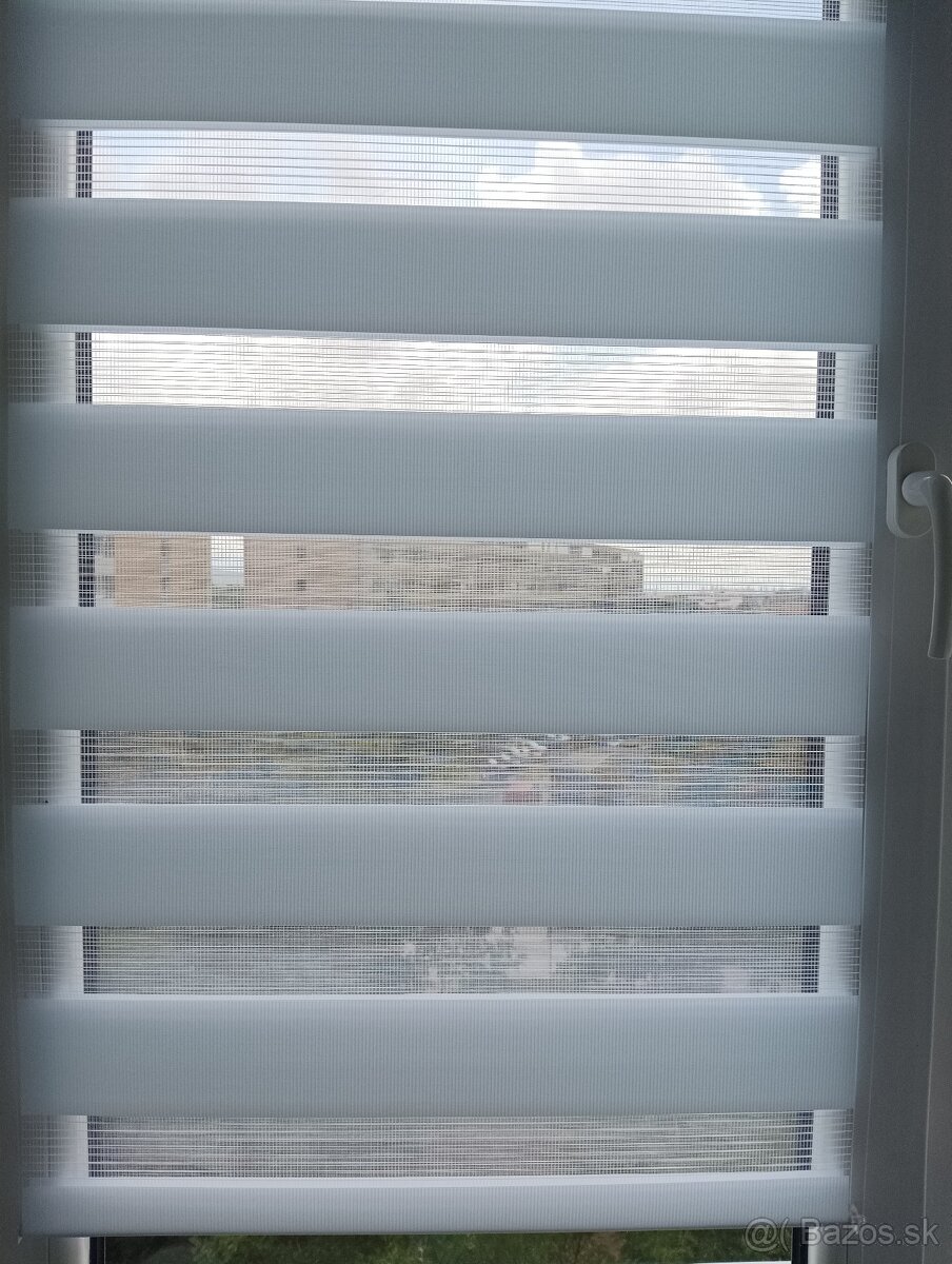 Predám úplne novú roletu Deň a noc bielej farby, atypický rozmer na malé okno balkónových dverí 50x100cm. Roleta ako na foto. Robená na objednávku, čakacia doba cca dva týždne, predám hneď :-))