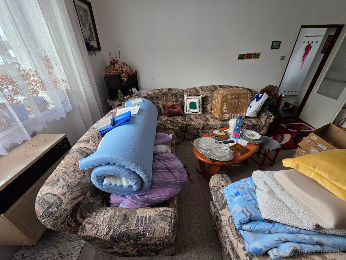 Predám rozkladací rohový gauč s kreslom a stolíkom. Iba vážny záujem, kuriérom neposielam, vyslovene osobný odber. Cena 150€.