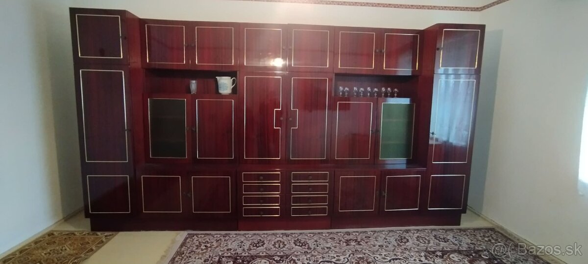 Predám obývaciu stenu vo veľmi dobrom stave. Obývacia stena je vyhotovená z dreva. Farba bordová lakovaná. Rozmer: 220cm/výška/x 420cm/šírka/. V prípade záujmu je na predaj aj koberec tiež vo veľmi dobrom stave.