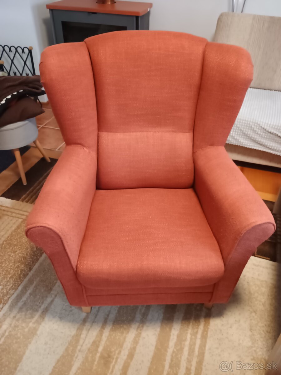 Predám 2ks televízne kreslá, tehlovej farby, jedno bez chýb, na jednom malé zatrhnutie, cena spolu