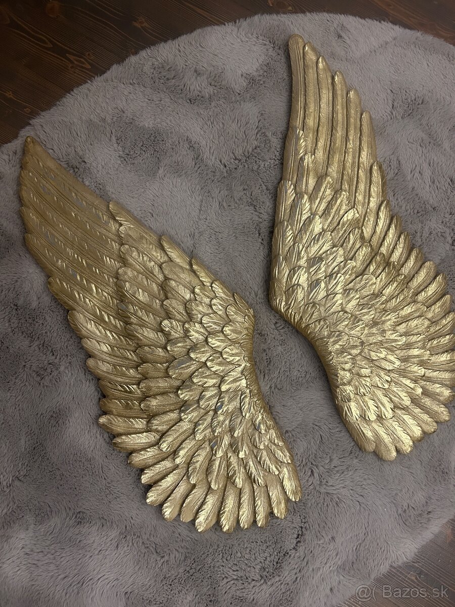 Predám pekné krídla na stenu v zlatej farbe. Z ľahkého, ale pevného materiálu. Na výsku 95 cm, na šírku cca 40 cm jedno krídlo.