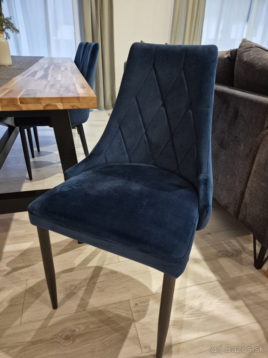 Predám jedálenské stoličky vo farbe kráľovská modrá v perfektnom stave. Predám iba ako set 6ks.