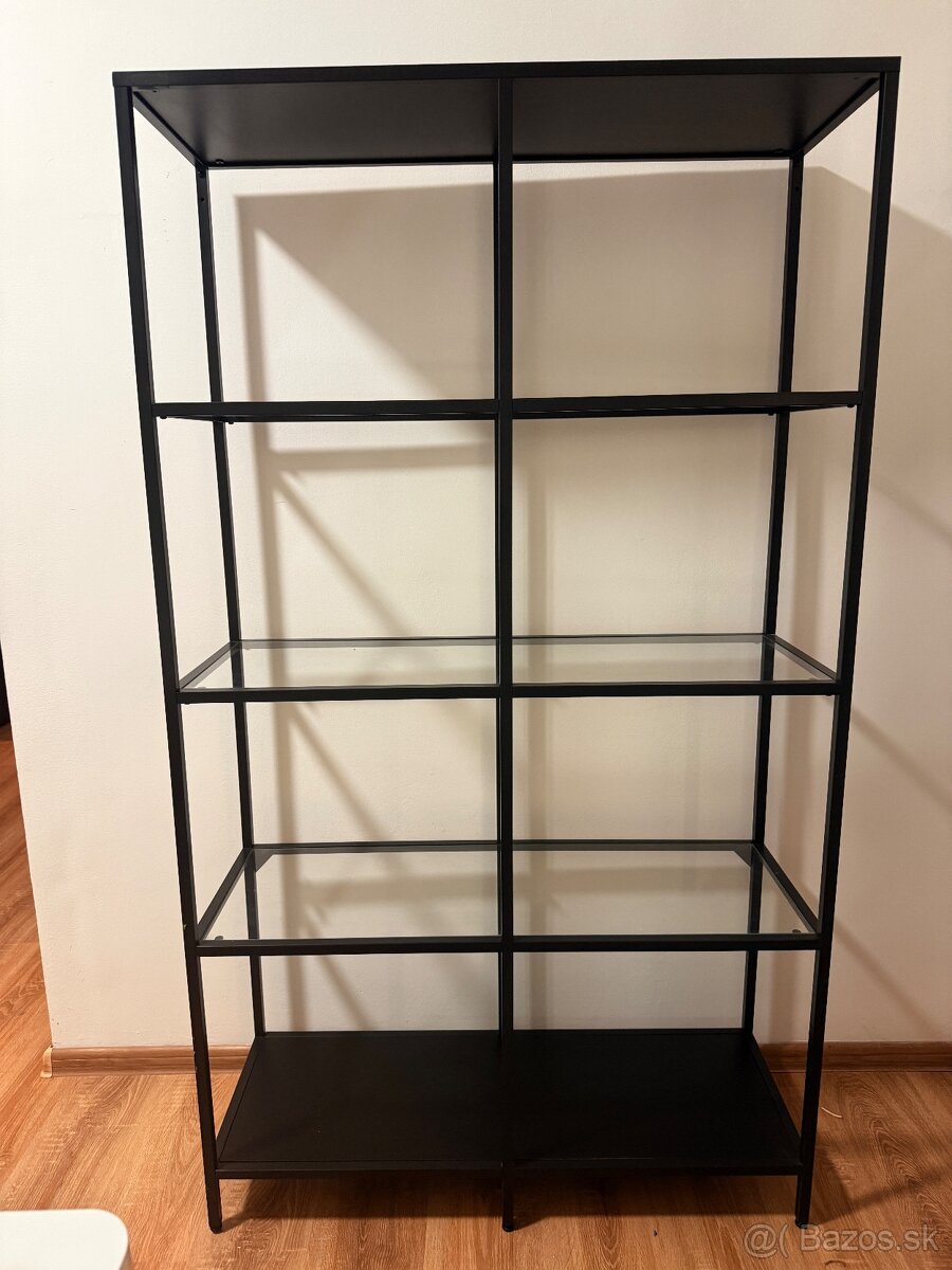 Predám čierny kovový regál, poličky sú sklenené a z dreva, dobre držia.