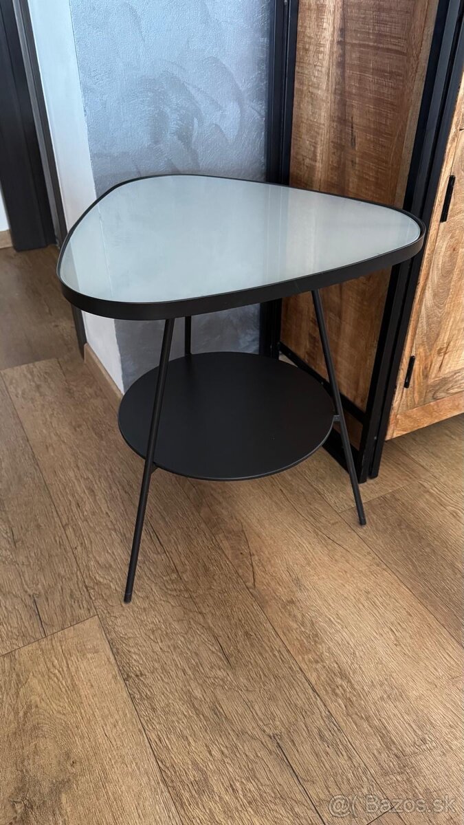 Predám dva kusy nočných stolíkov bez poškodení, kombinácia kovový rám s mliečnym sklom. Výška 57cm, trojuholníkový tvar -50x50cm. Osobný odber Trnava alebo Bratislava podľa dohody. Cena 10