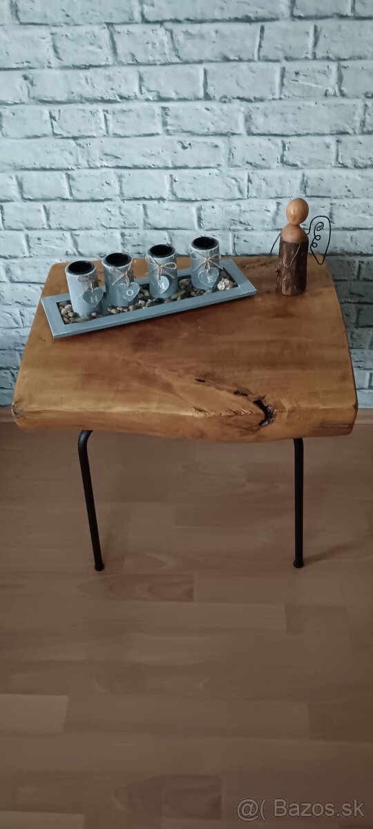 Predám stolík vhodný ako menší konferenčný alebo odkladací stolík vyrobený z masívu morený odtieňom orech ošetrený eko lakom. Rozmery 58x48cm výška 50 cm