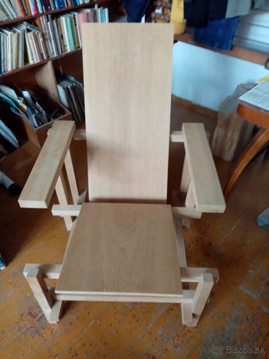 prodám kopii křesla Rietveld, masívní dub, dřevo přirozeně vysušené, 2ks, cena za 1 ks, volejte 604 654 554