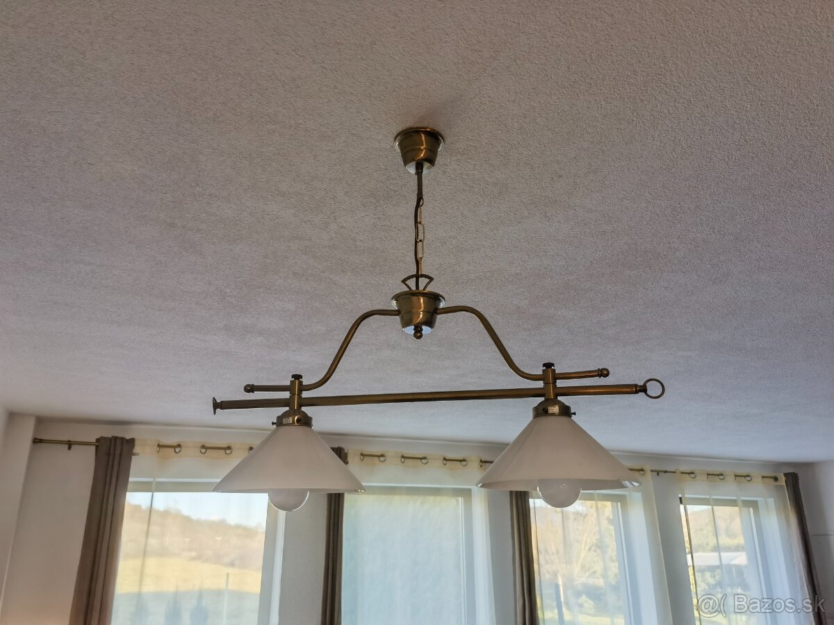 Ponúkam na predaj málo používaný a nepoškodený luster medenej farby, na dve Led žiarovky. Dĺžka lustra cca 60cm.