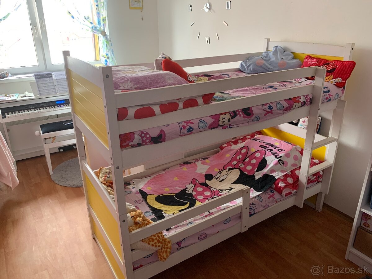 Predám dvojposchodovú používanú posteľ s matracmi … keďže slúžila deťom sú tam mierne známky poškodenia šikovný tatik si s tím dá radi možnosť dohody