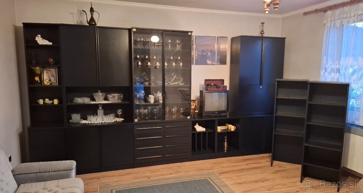 Predám čiernu obývaciu stenu. Na jednej sklenenej vitríne je prasklina.