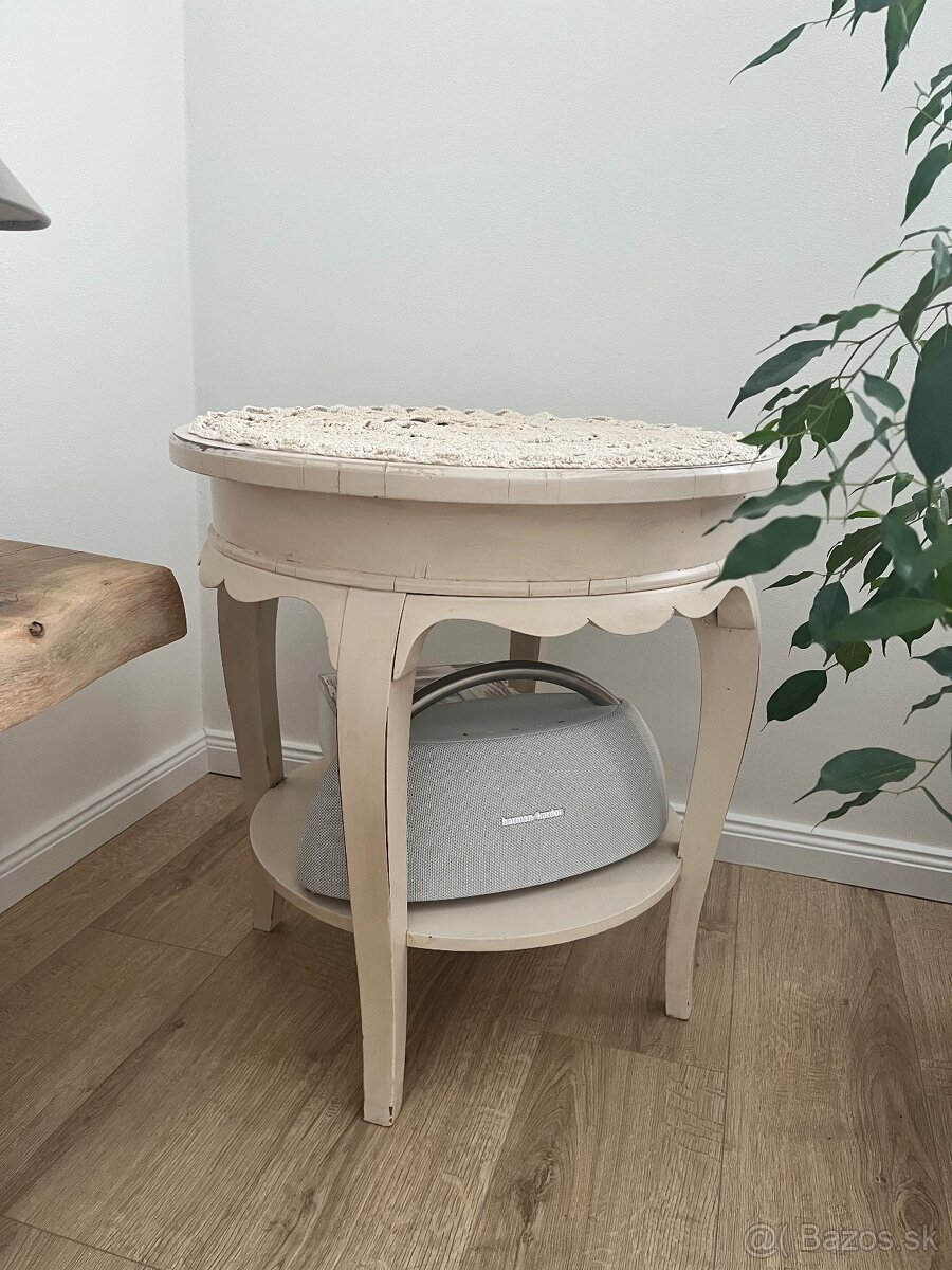 Predám zrekonštruovaný okrúhly stolik krémovej farby. Nádherný retro štýl. Obrus ku tomu grátis