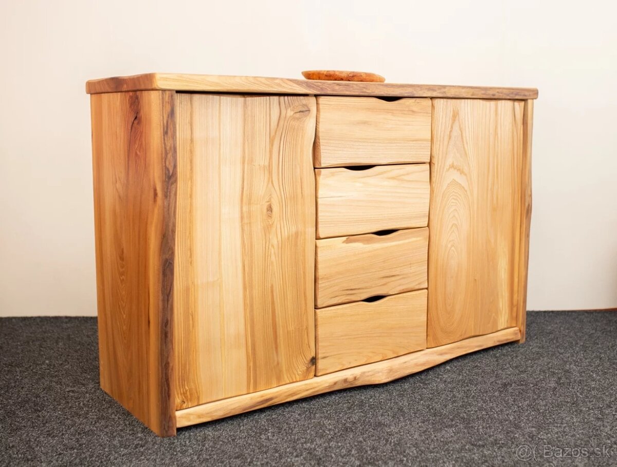 Predám/vymením novú komodu MRAVA, v jedinečnom originálnom dizajne z brestového kartáčovaného dreva s dekoračnou kresbou štruktúry dreva.