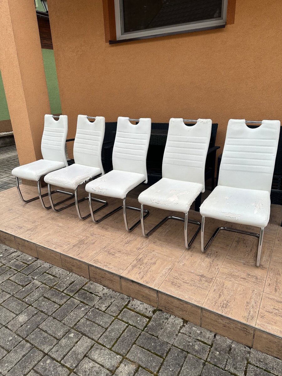 Jedálenské stoličky - [3.2. 2026]Predam jedálenské stoličky je na nich poškodená eko koža dajú sa prečalunit...