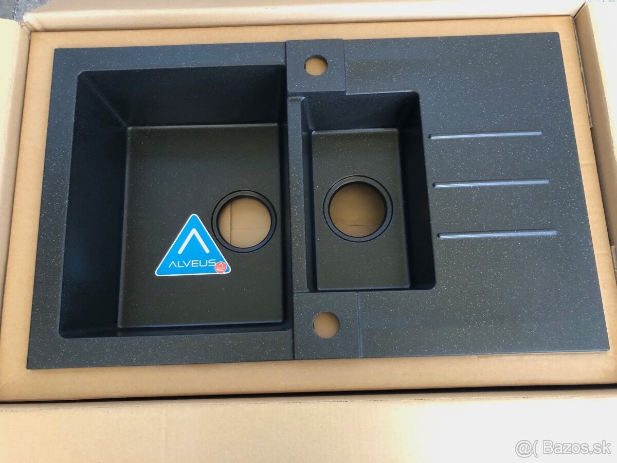 Predám nový,nepoužitý granitový drez Alveus Rock 70 black 91 čierny,rozmer 780 X 480 mm,rozmer vaničky: 320 x 400 x 180 mm