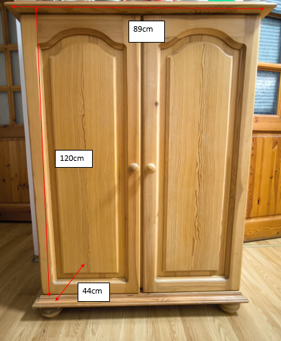 výška 250, šírka 220, hĺbka 45. Skriňa má zadnú stenu aj strop v 2/3 šírky. Skriňa v stave ako na foto, koncom týždňa sa bude demontovať.