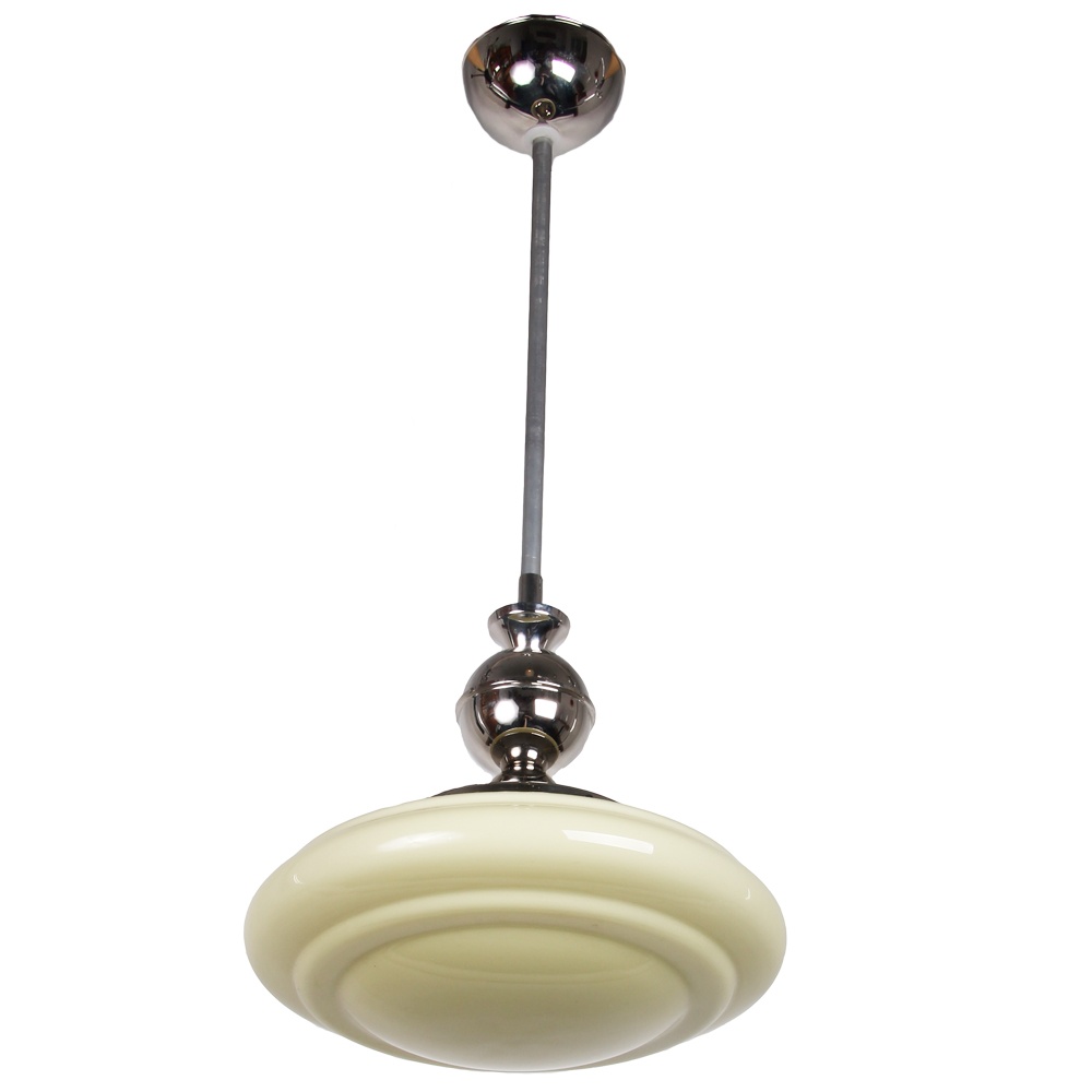 Predam luster - [19.2. 2026]luster je retro závesný luster z 30.–40. rokov, štýl art deco / raný funkcionalizmus.