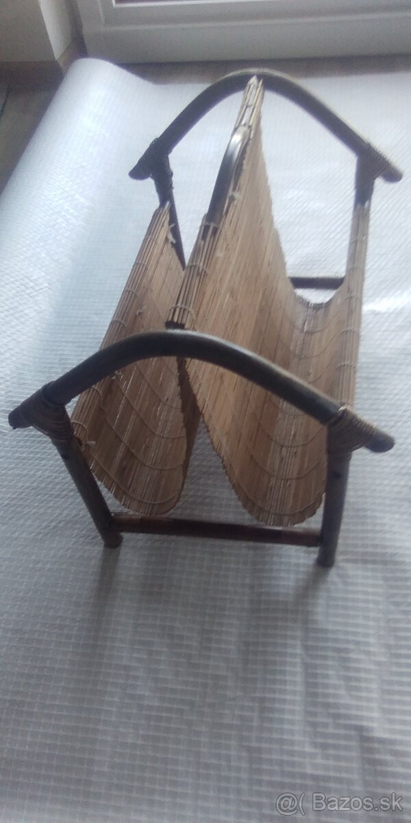 Ratanový stojan / držiak na noviny a časopisy , zachovalý , rozmer 30 x 47 cm. , výška 37 cm. , cena 10,- €