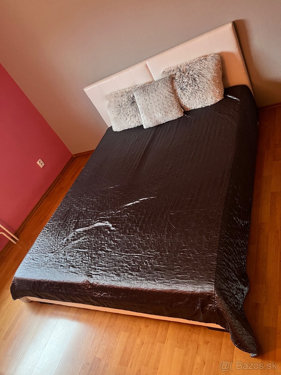 Predám manželskú posteľ koženkovu čalunenú. V cene 2 ks madrace.