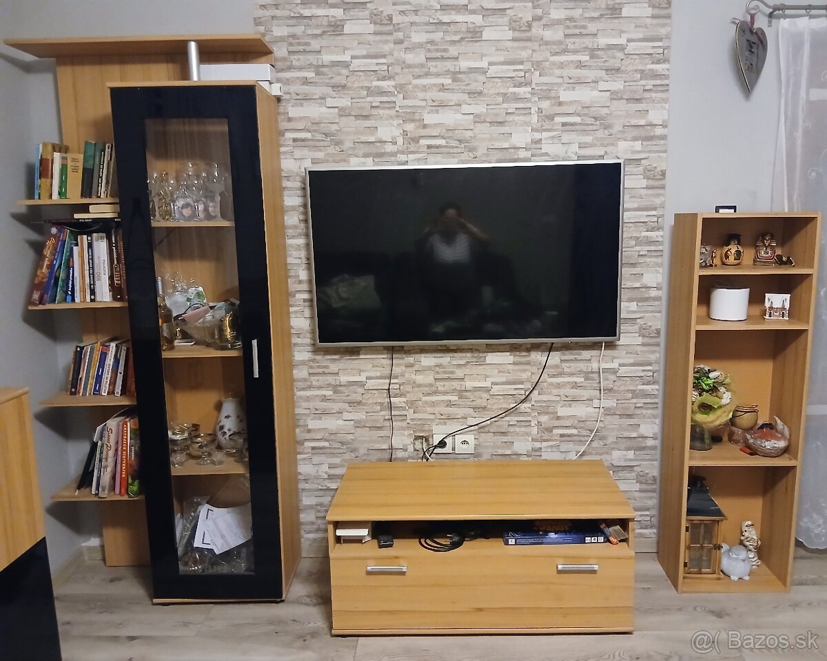 obývacia stena - [1.2. 2026]Predám čiernu obývaciu stenu. Na jednej sklenenej vitríne je prasklina.