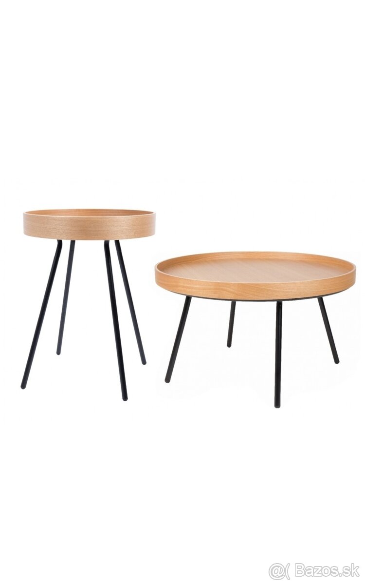 Predám konferenčný a príručný stolík Zuiver, farba: neutrálna dubová dýha, čierne kovové nohy, odnímateľná vrchná doska, ktorú je možné využiť aj ako podnos, vo výbornom stave.
