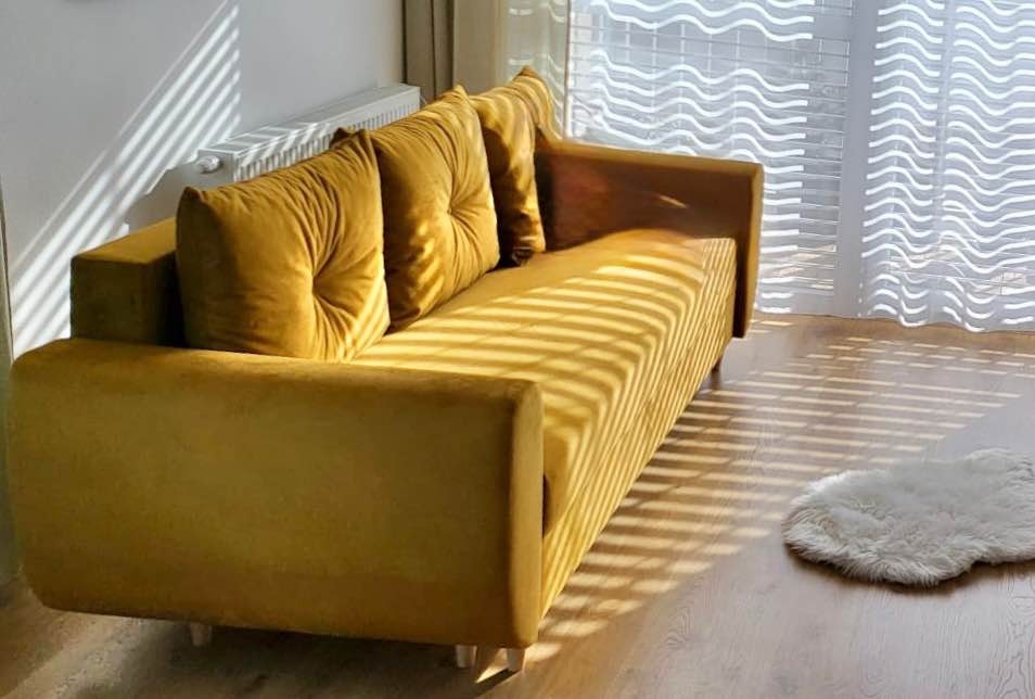 Rozkladacia pohovka 242cm šírka, 90cm hĺbka, hĺbka sedu 50cm. Úložný priestor. 3 miesta na sedenie. Osobný odber Nitra.
