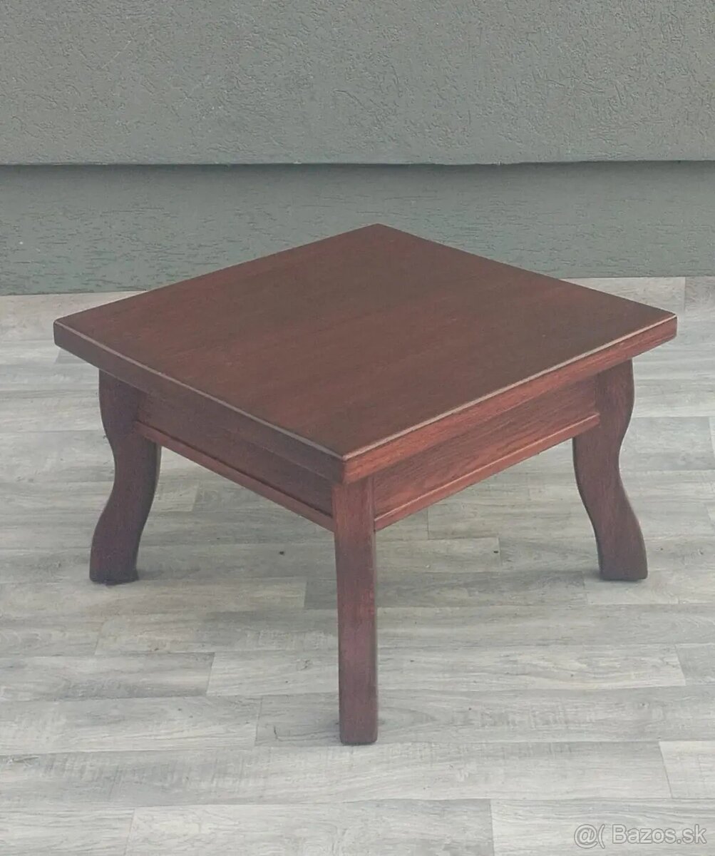 Stolík konferenčný v koloniálnom štýle z masívneho teakového dreva a elegantnými, vlnovkovými tvarovanými nohami s tmavohnedou povrchovou úpravou , bude vďaka svojmu štvorcovému tvaru a rozmerom vhodný ako konferenčný stolík do obývačky , alebo ako príručný stolík. Používaný . Výška – 42 cm , dĺžka – 65 cm , šírka – 65 cm .Dovoz Holandsko. Dovoz až k Vám domov viem v rámci Slovenska zabezpečiť po dohovore zadarmo . Pozrite všetky moje inzeráty možno zaujme aj niečo iné. Uprednostňujem telefonický kontakt pred sms a emailmi. Všetko je o dohode .