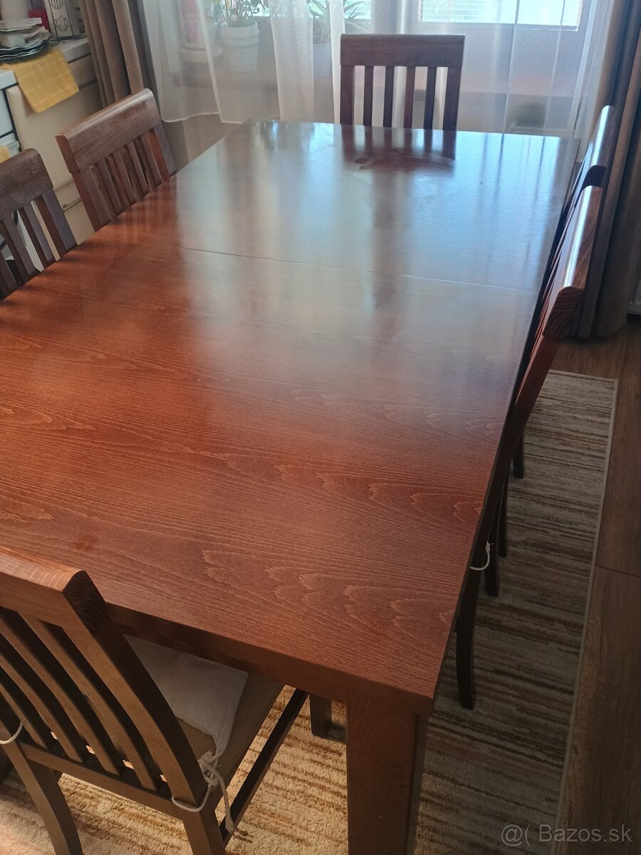 Pekný deň prajem.. ponúkam na predaj krasny veľký 160 cm jedálenský stôl plus 8 stoličiek- kus za 30 eur. Stôl sa dá roztiahnuť. Všetko je v peknom používanom stave.
