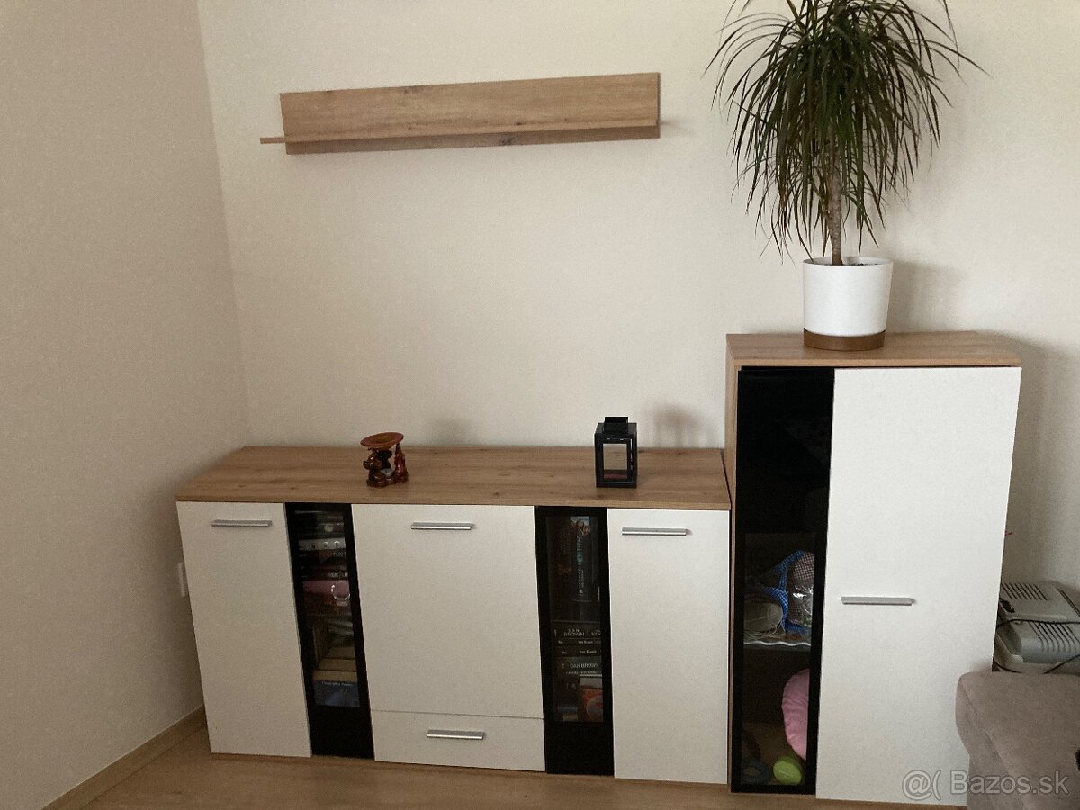 Obývaciu zostavu tvorí tv stolík, komoda, nástenná polica, zavesná skrinka, stojaca skrinka plus ponúkam ku zostave konferenčný stolík.