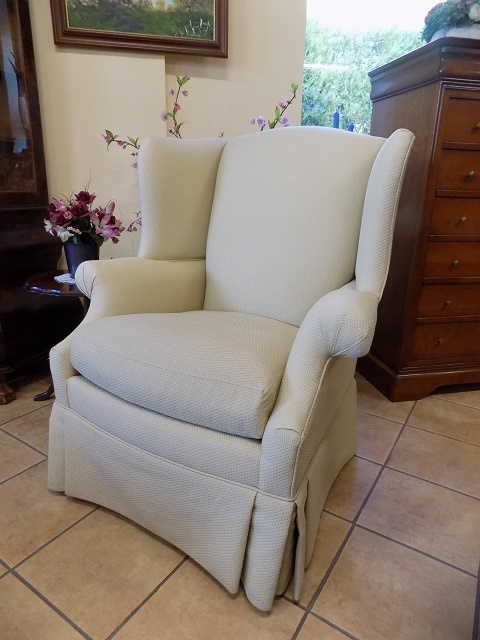 Ponúkam na predaj kreslo typu ušiak , výrobca firma Drexel. Kvalitná poťahová látka, nepoškodená. Rozmery : Š 85 cm, H 85 cm, V 106 cm, hĺbka sedu 50 cm, výška sedu 52 cm. Cena za kus : 225€, k dispozícii 2 kusy.