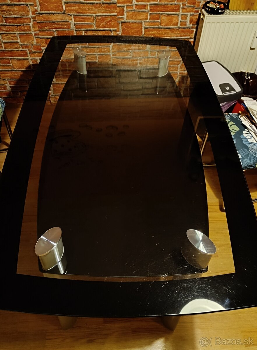 Veľký moderný sklenený stôl 190×160 cm, výška 75 cm– kovové nohy