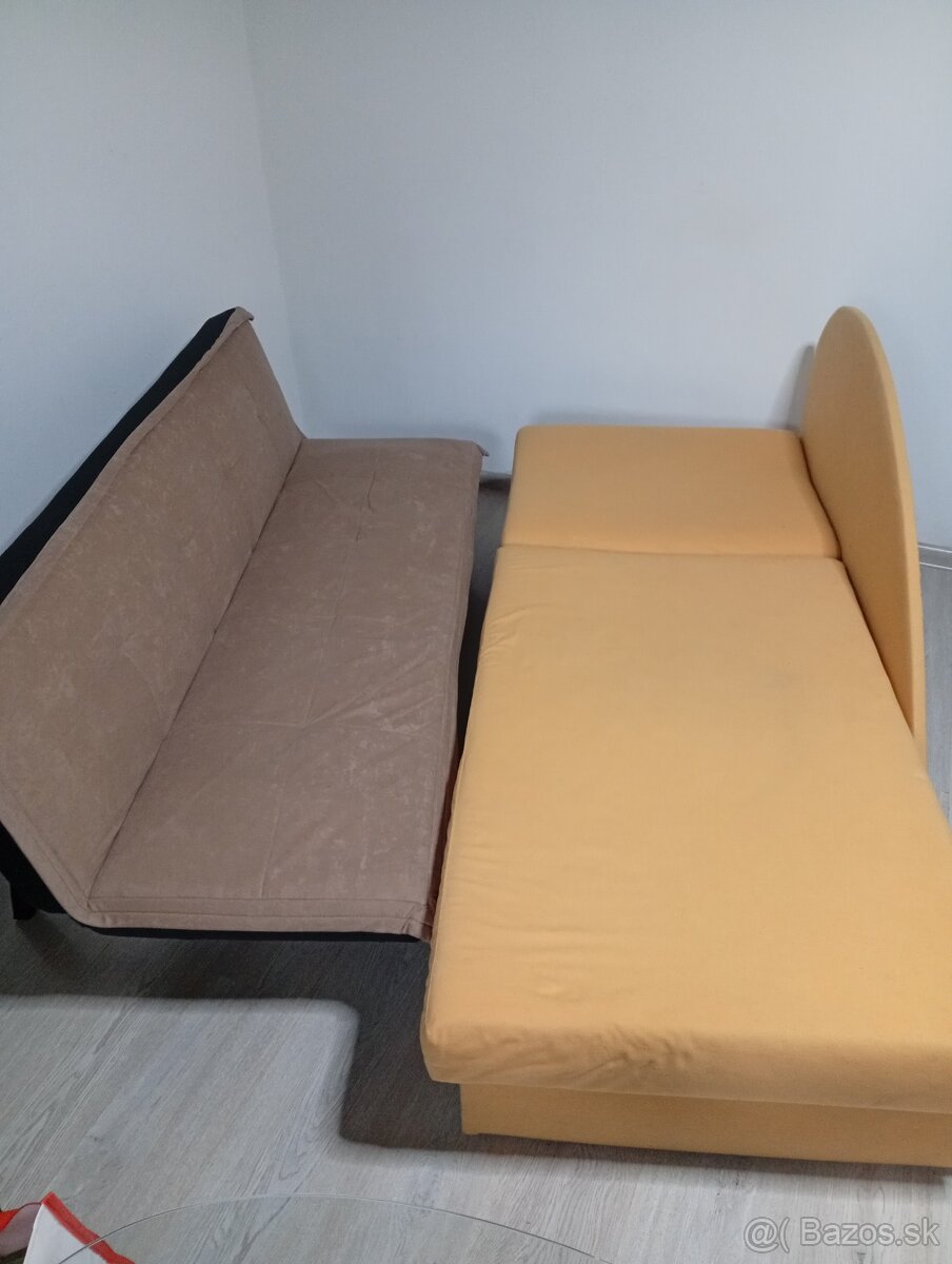 Predám obidve pohovky hnedá je ako nová, oranžová je používaná a tiež je v dobrom stave. Hnedá pohovka má 3 polohy sklonu opierky rozmery sú 170cm dĺžka a hĺbka je 50 cm
