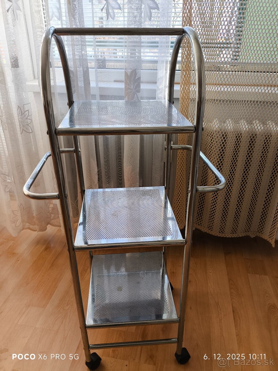Regál - [8.2. 2026]Čierny, 3 police, pevný, top stav používaný 2 mesiace, rozmery: celková výška s kovaním 95cm, šírka 60, hĺbka 32cm, hrúbka kovania 2cm