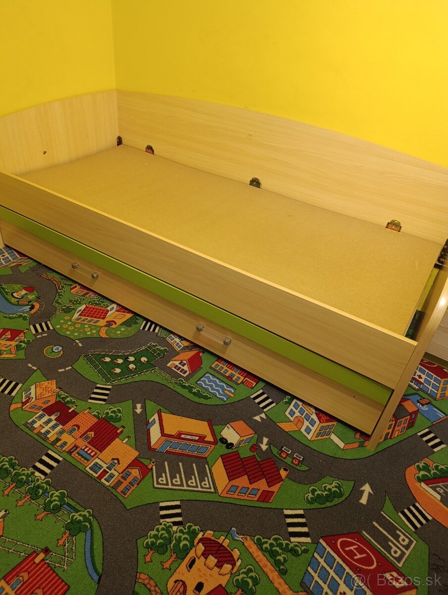 Predám posteľ po jednom dieťati. V dobrom stave. S úložným priestorom. Rozmery matraca 90x 200. Známky poškodenia sú odfotené.