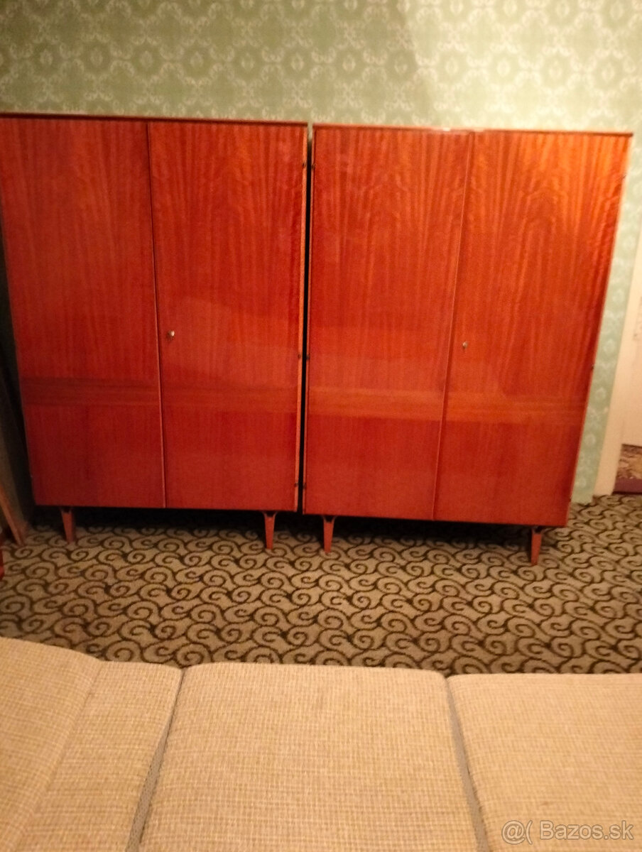 Retro spálňa - [6.2. 2026]Ponúkam kompletnú retro spálňu z konca 60-tych rokov minulého storočia, vyrobenú v UP Závodoch podľa návrhu Františka Mezulánika. Spálňa je vyrobená z lešteného masívu. Nábytok je vo výbornom stave, bez škrabancov, bez odretí (bol stále na tom istom mieste).