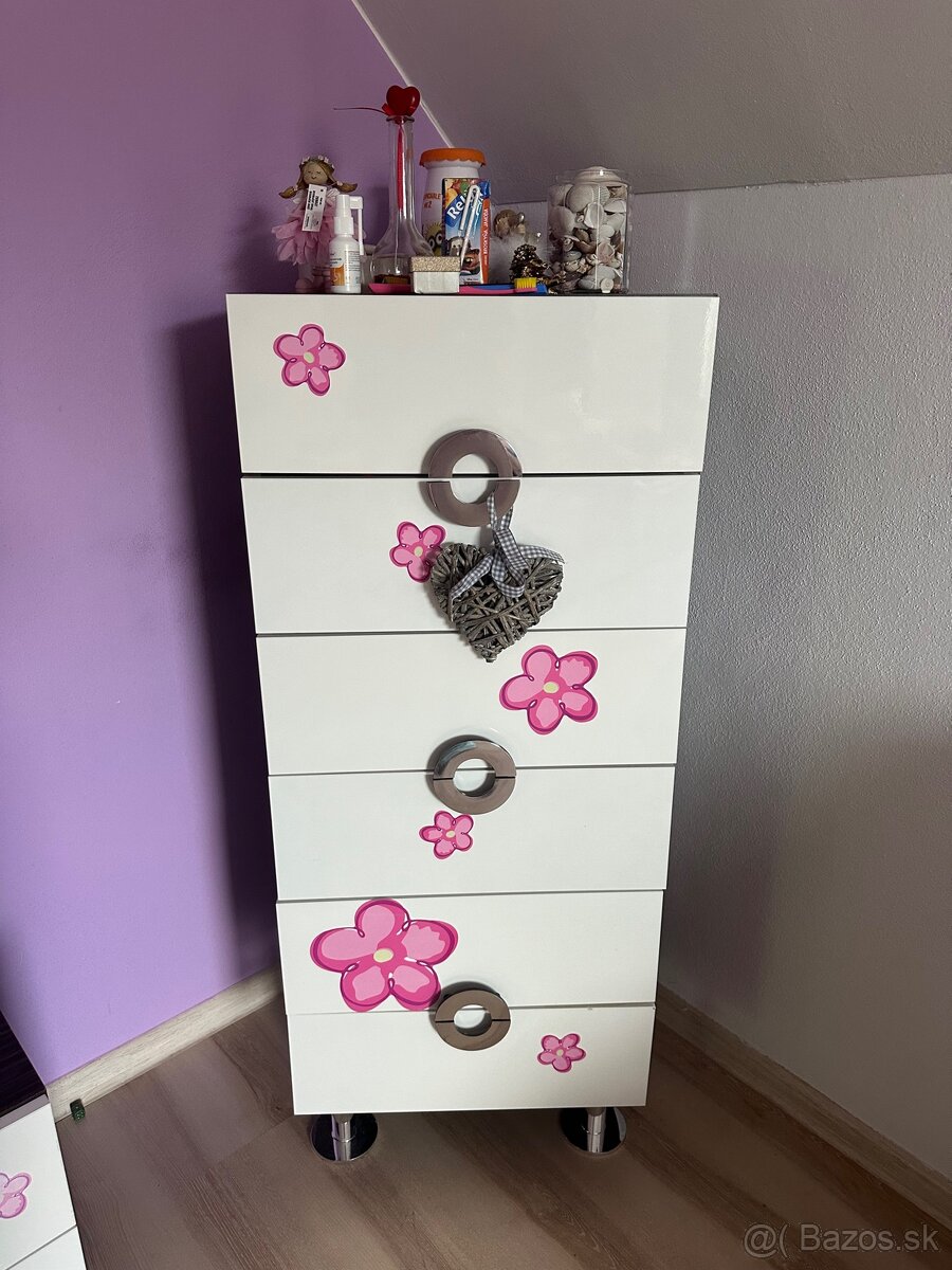 Predám skriňu - úplne novú s vysuvacími šuplíkmi. Je možnosť aj kvietky odlepiť.